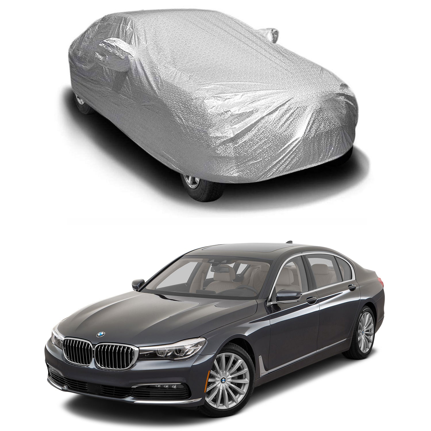 Oshotto Spyro Silver Anti Reflective, dustProof Silver and Water Proof Silver Car Body Cover with Mirror Pockets For BMW 7 Series