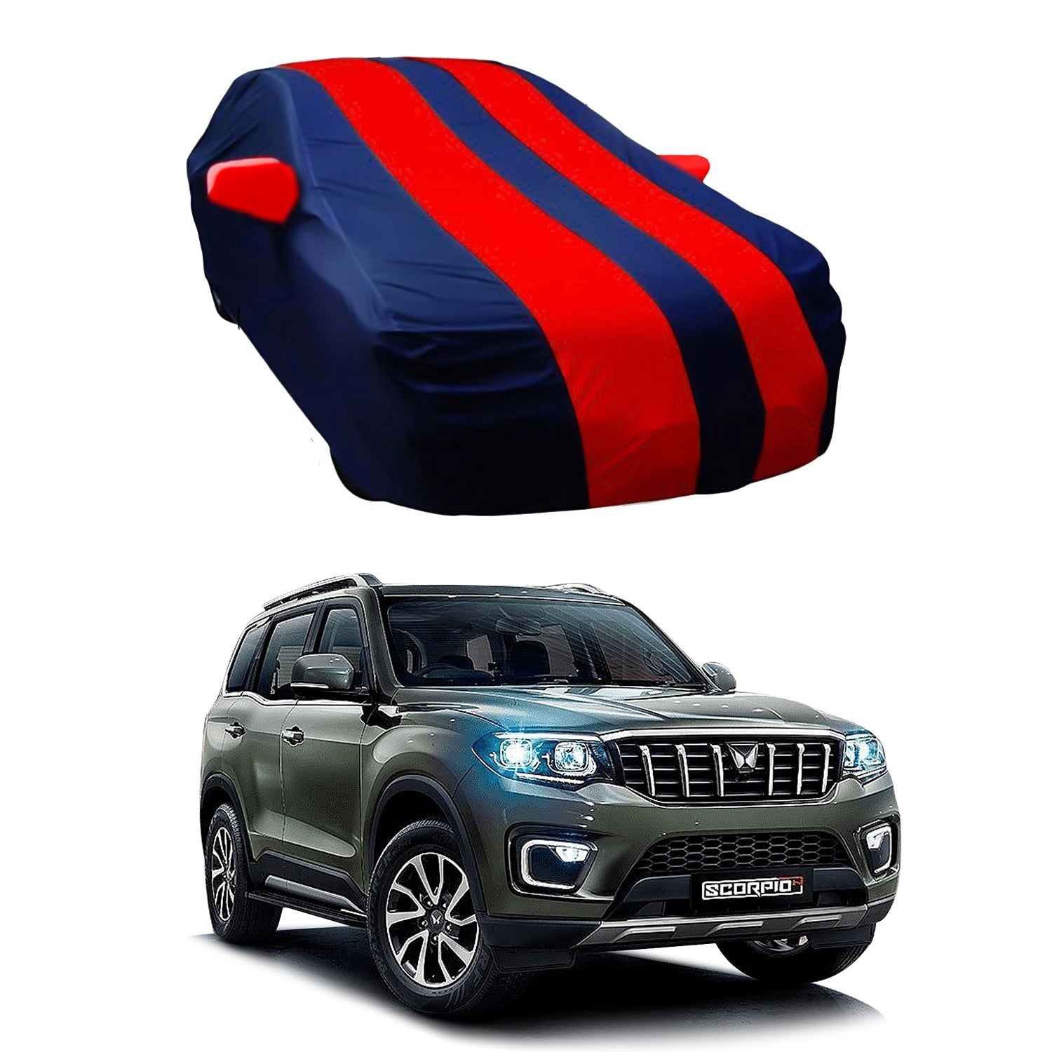 Oshotto Taffeta Car Body Cover with Mirror Pocket For Mahindra Scorpio N 2022 Onwards (Red, Blue)