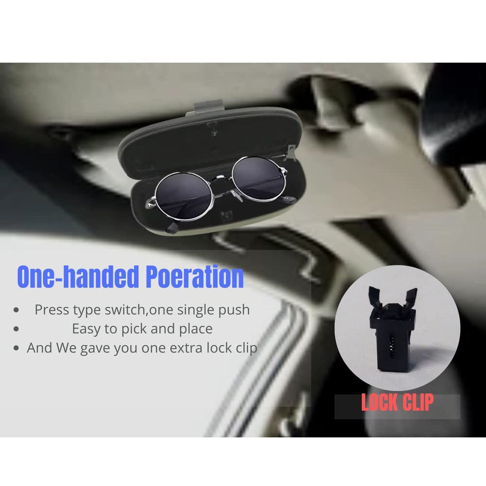 The Sunglass holder is perfectly designed to fit all cars, suv, and trucks visors,fits all glasses and sunglasses. This car sun visor glasses holder is great to protect your glasses from scratching or breaking in your car, so you can have an enjoyable ride and give your glasses longer life.This eyeglasses organizer box is made of the highest quality materials, it also includes on the inside a velvet feel material to keep your glasses safe from scratches for years to come.just clip the case over your sun visor,great design not to block your view from driving.